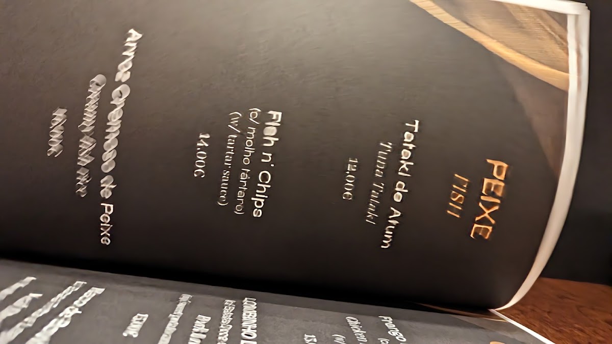 Moving on to the Peixe (Fish) dishes, the menu highlights the freshness of local seafood, with options like Peixe fresco da nossa costa (fresh fish from our coast), available upon request, and the comforting Brás de bacalhau, a traditional Portuguese codfish dish. For something more unique, try the Prego de atum, a tuna steak sandwich, which offers a twist on classic seafood flavors.
